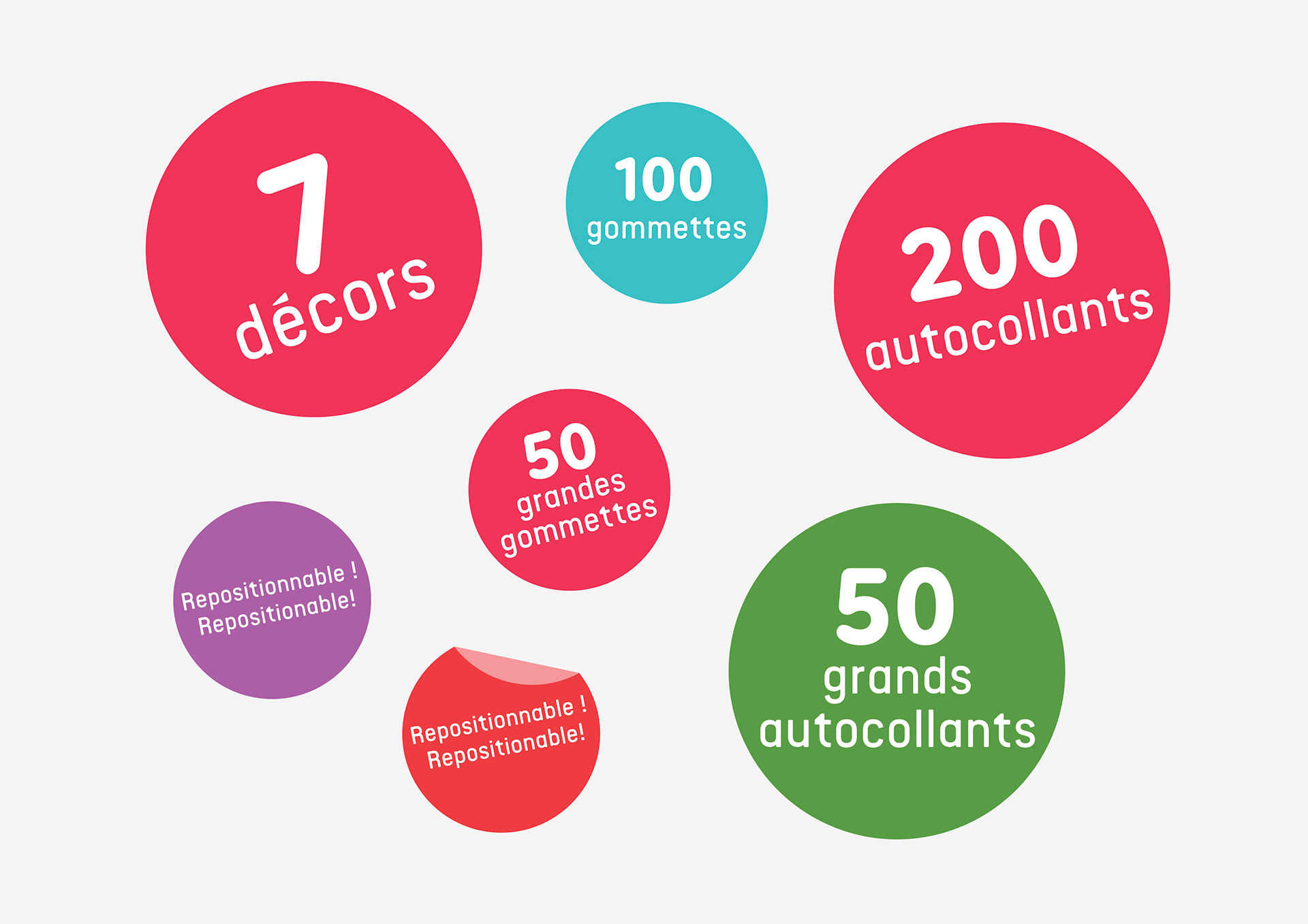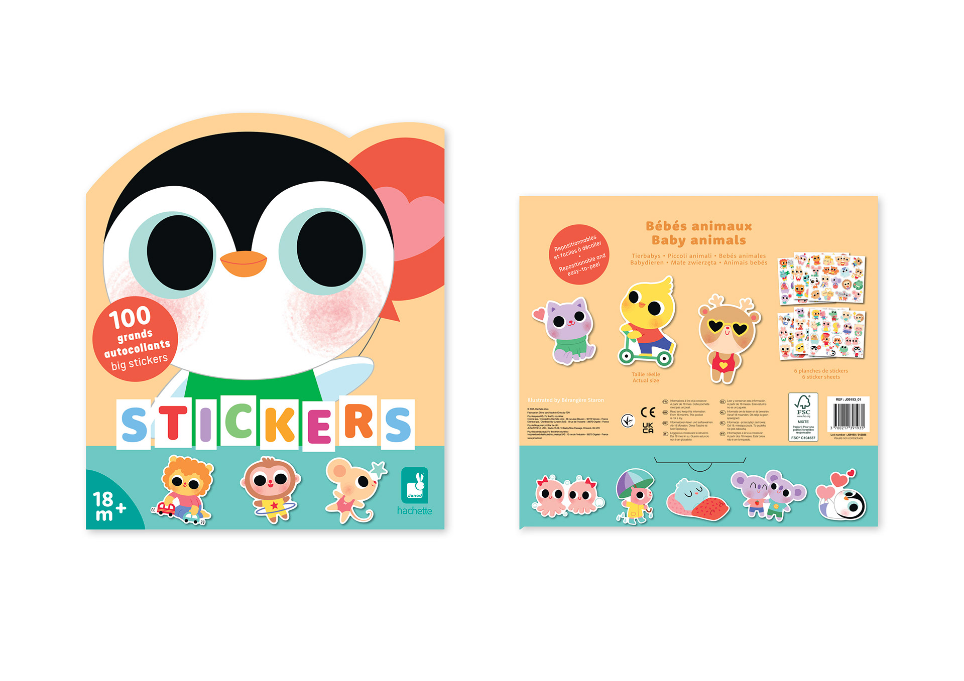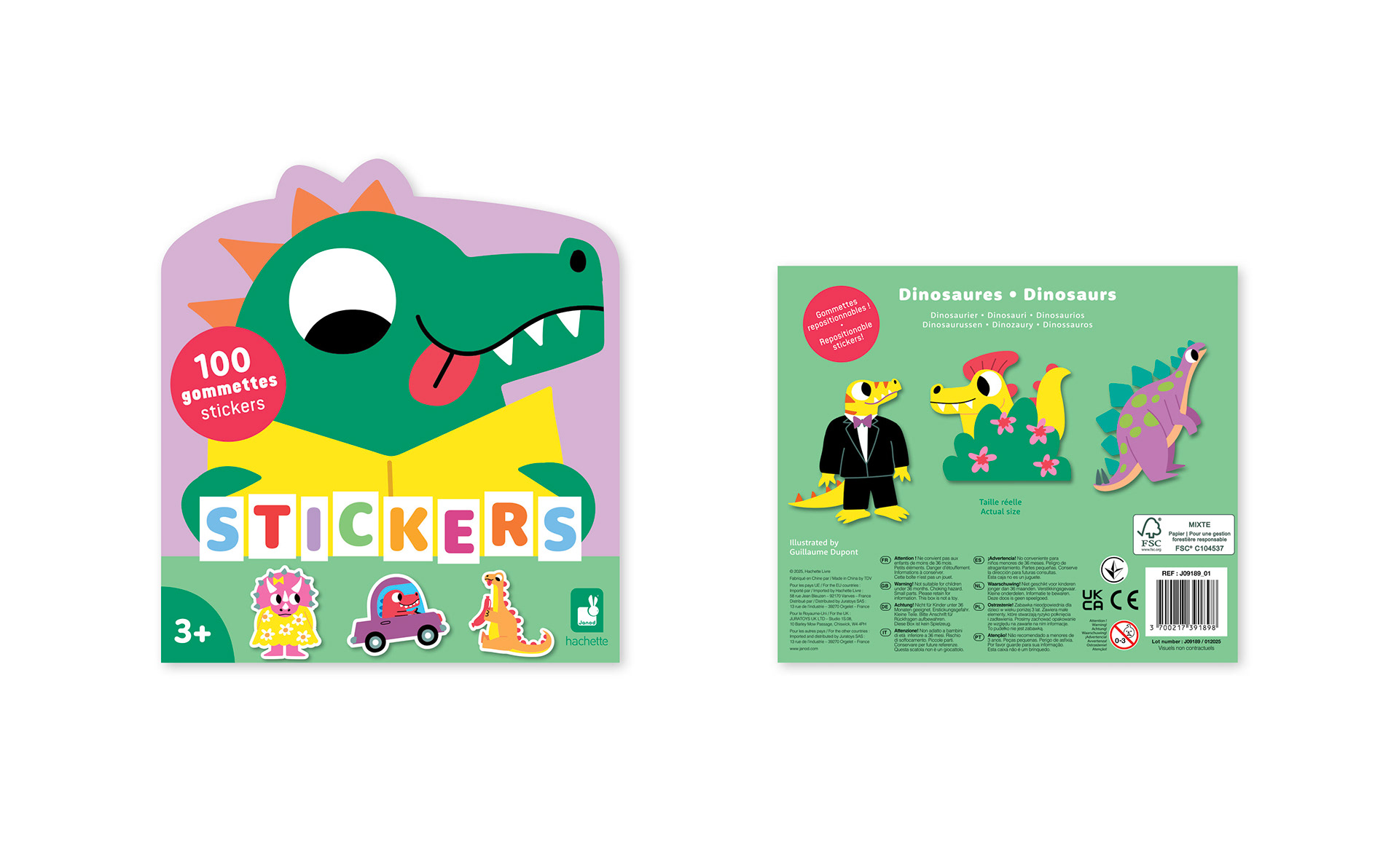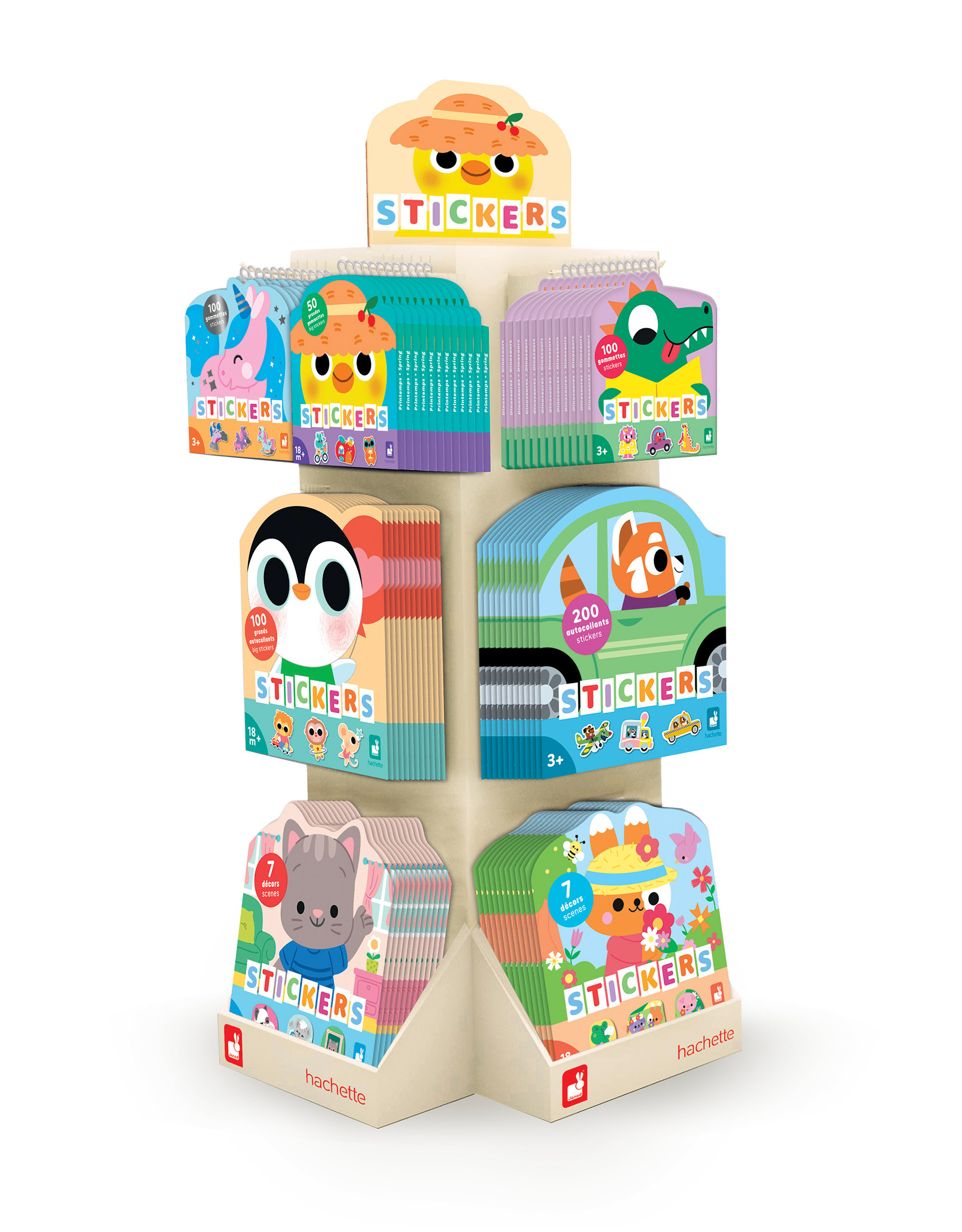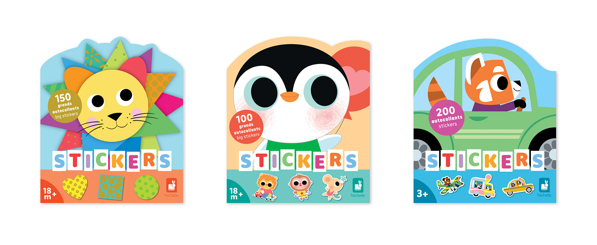 Charte graphique de la nouvelle gamme STICKERS chez Hachette / Janod. Création du logo, design des pochettes et déclinaison de la charte sur l'ensemble des titres.
