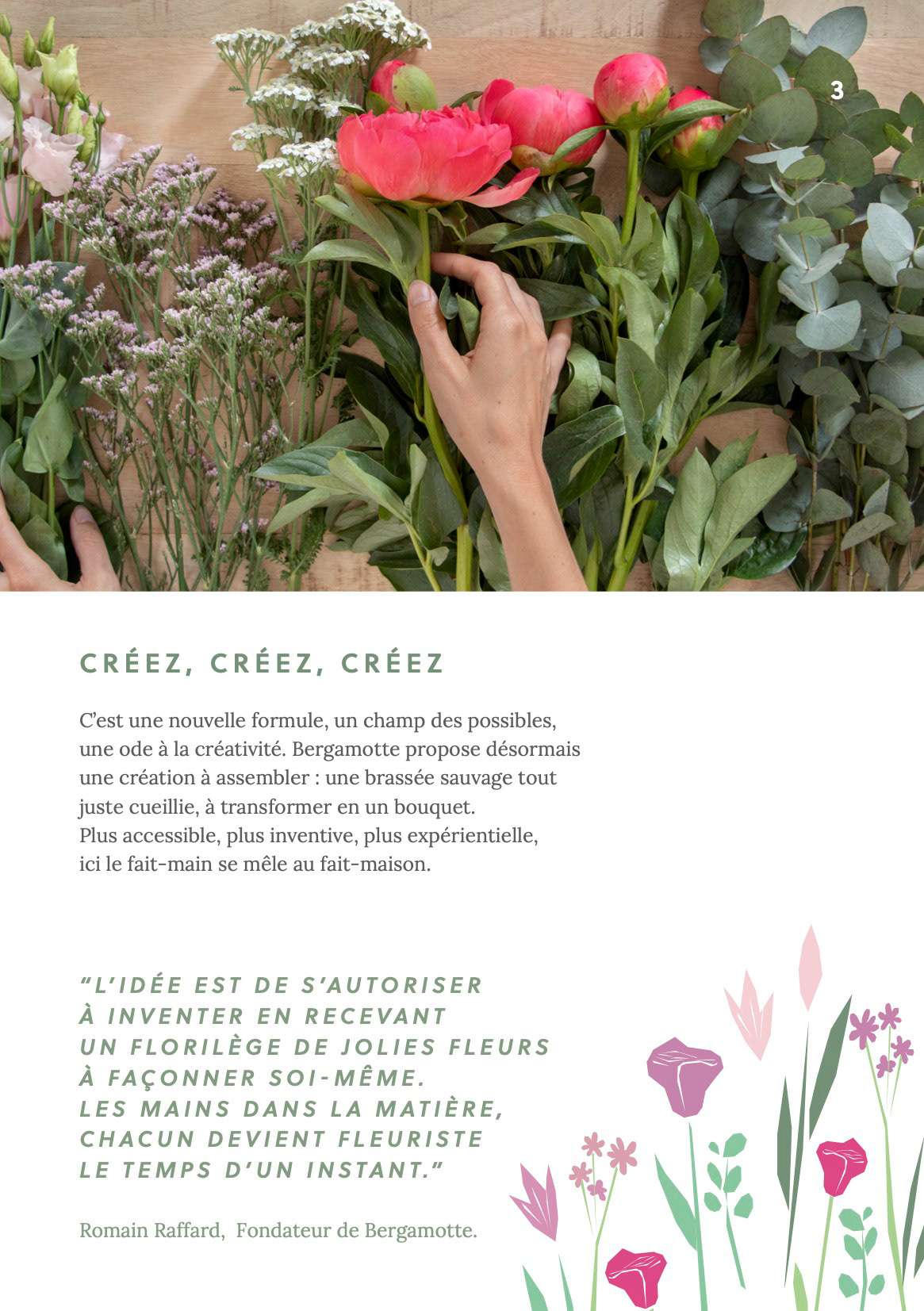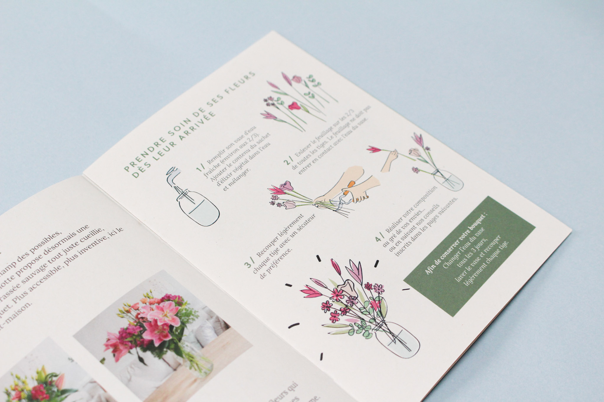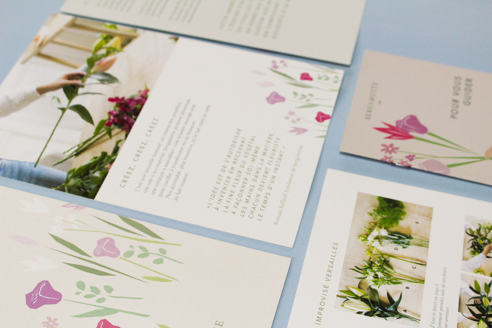 Univers visuel de la collection de bouquet à faire soi-même (lancée en 2020). Illustrations, design du dossier de presse, habillage du packaging, réalisation des livrets explicatifs et des DIY à destination des clients.