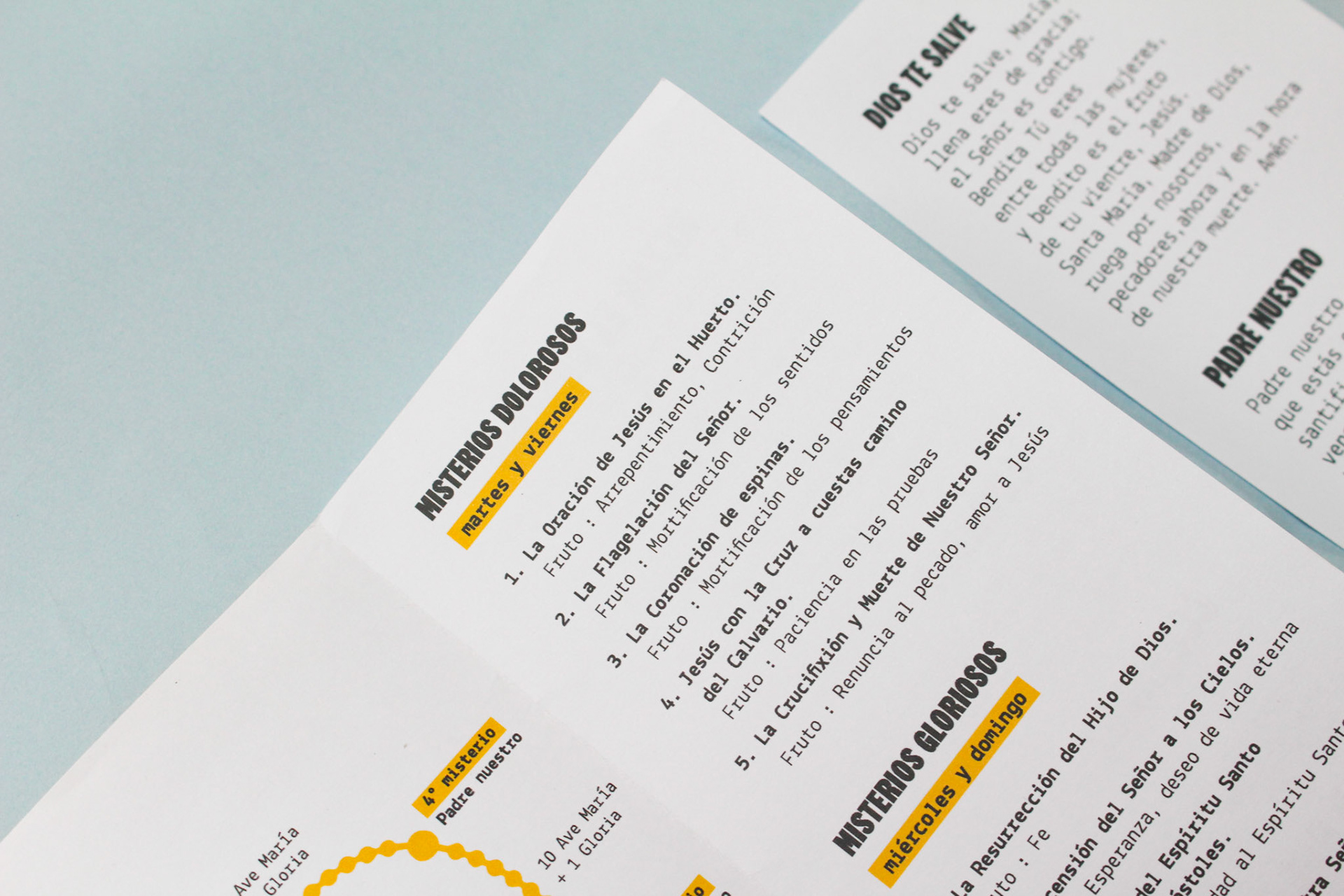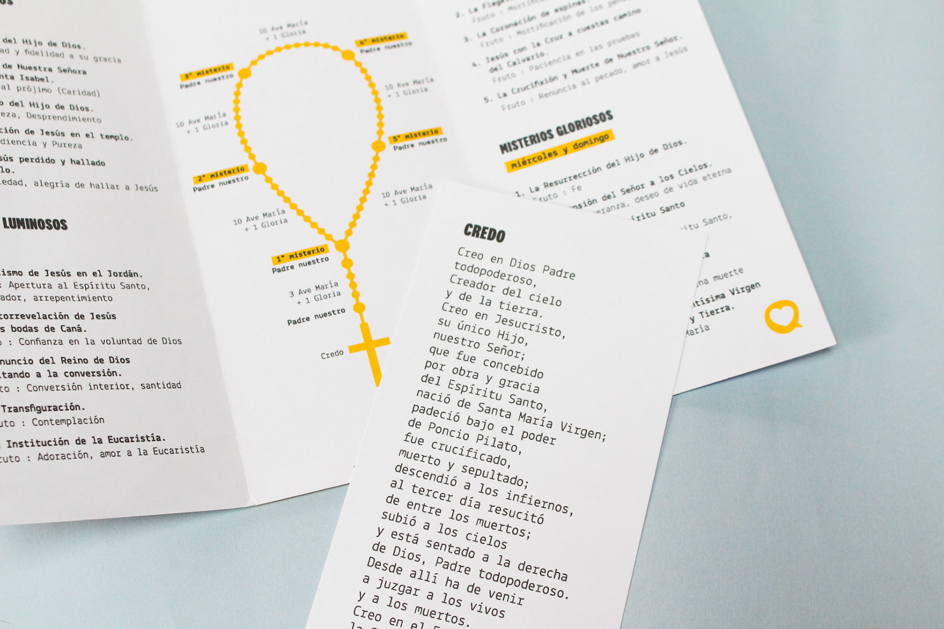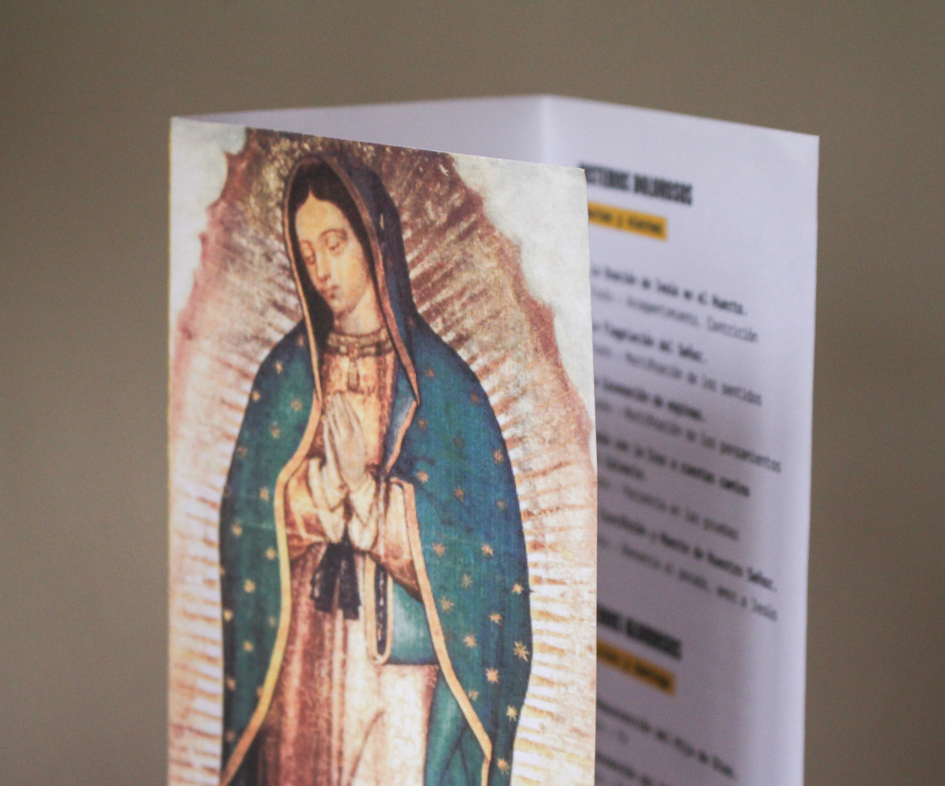 Conception d'un dépliant sous forme de triptyque qui explique la prière du chapelet. Réalisé pour l'association Misericordia en Argentine.