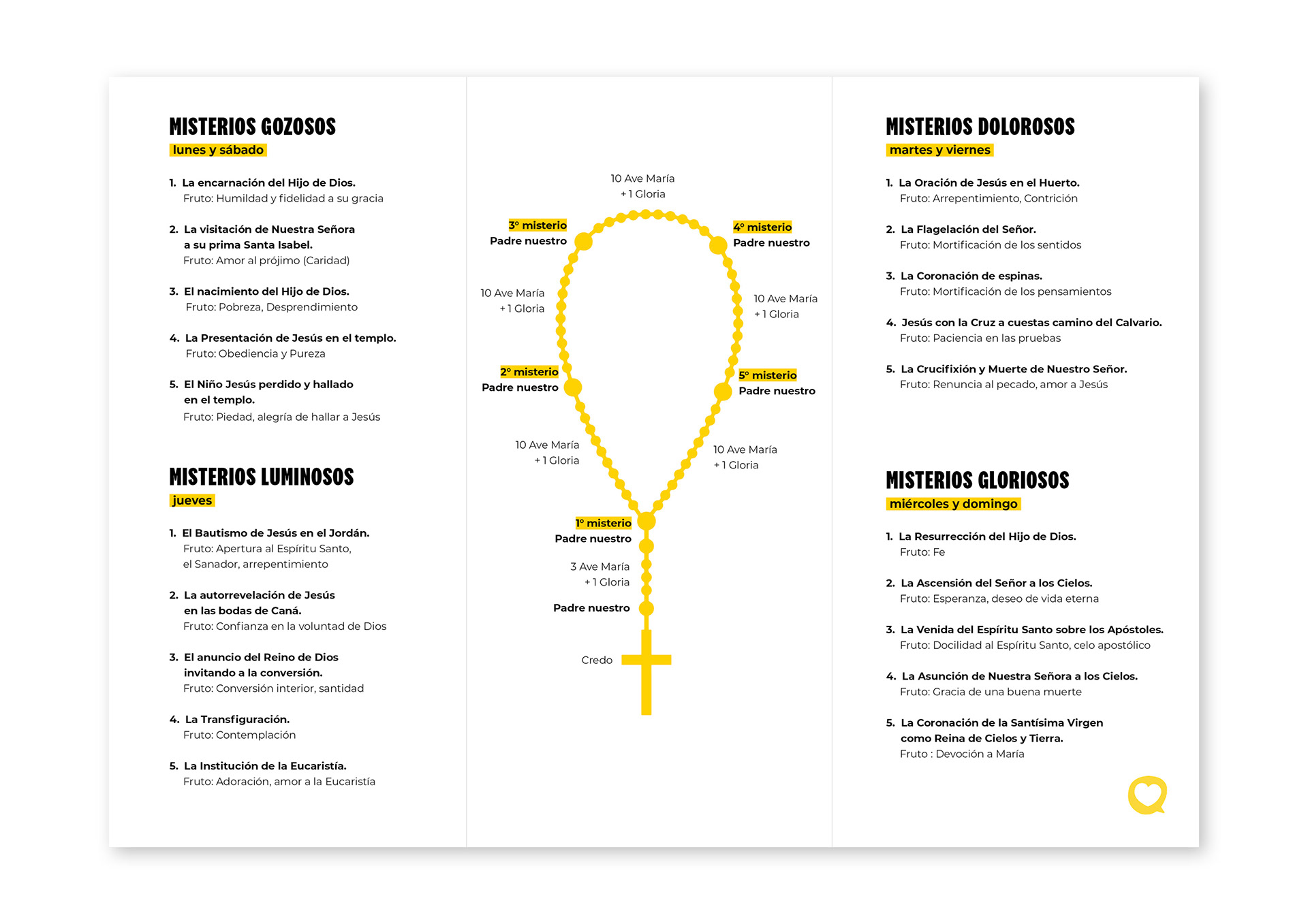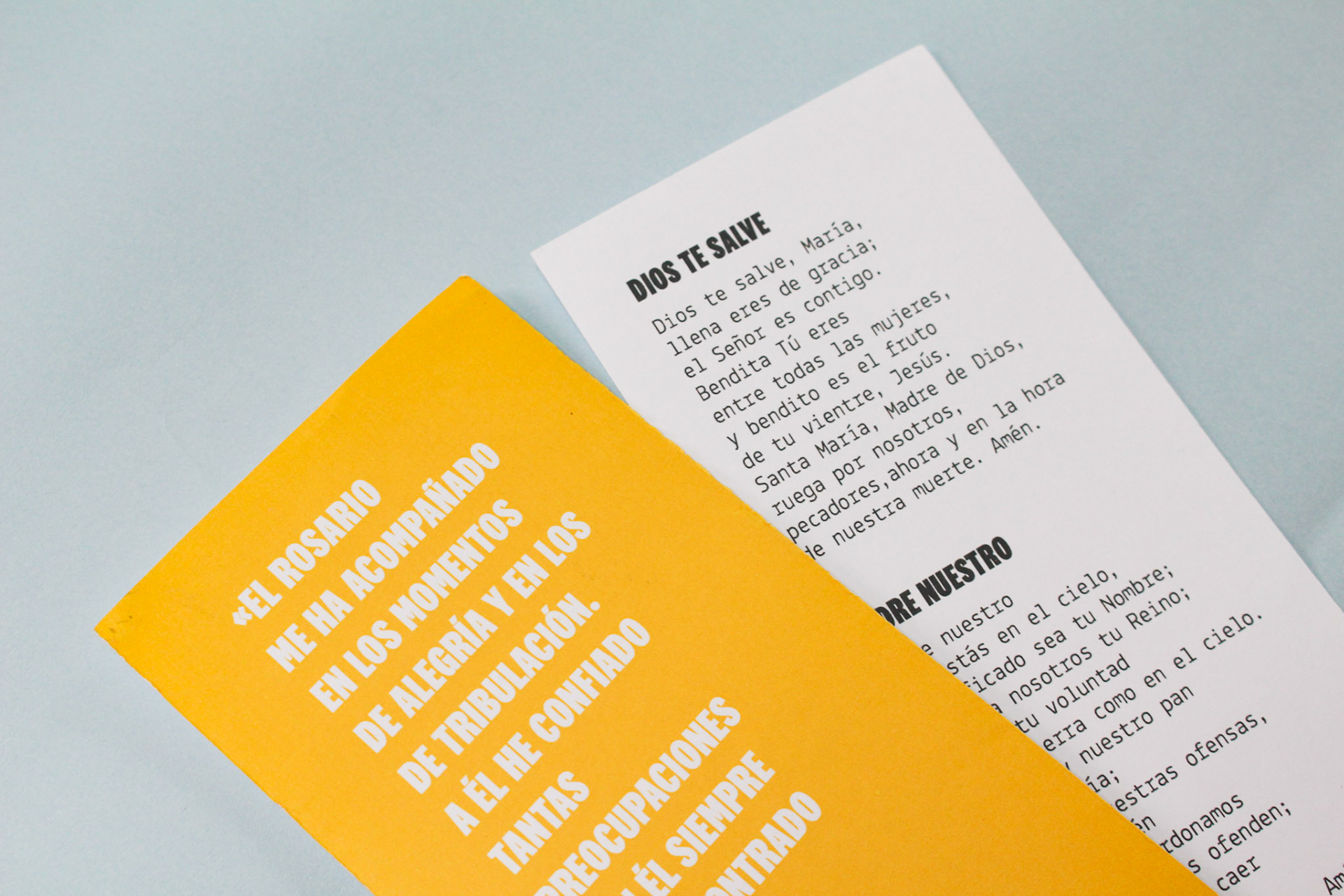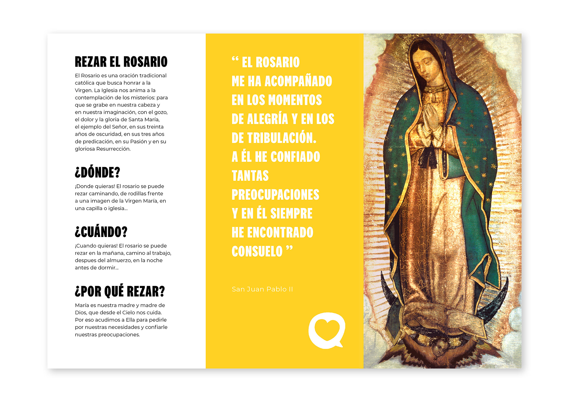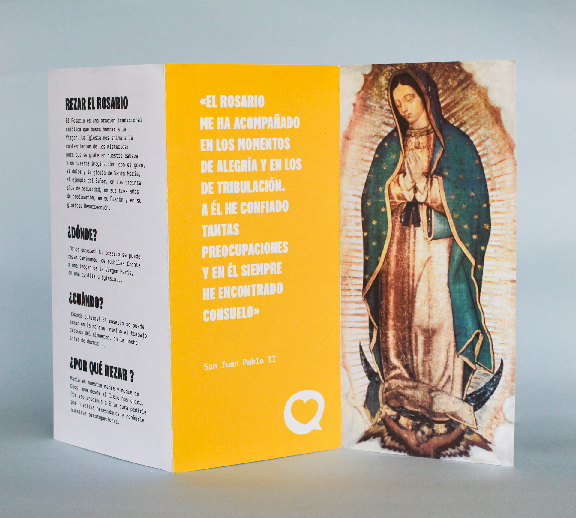 Conception d'un dépliant sous forme de triptyque qui explique la prière du chapelet. Réalisé pour l'association Misericordia en Argentine.