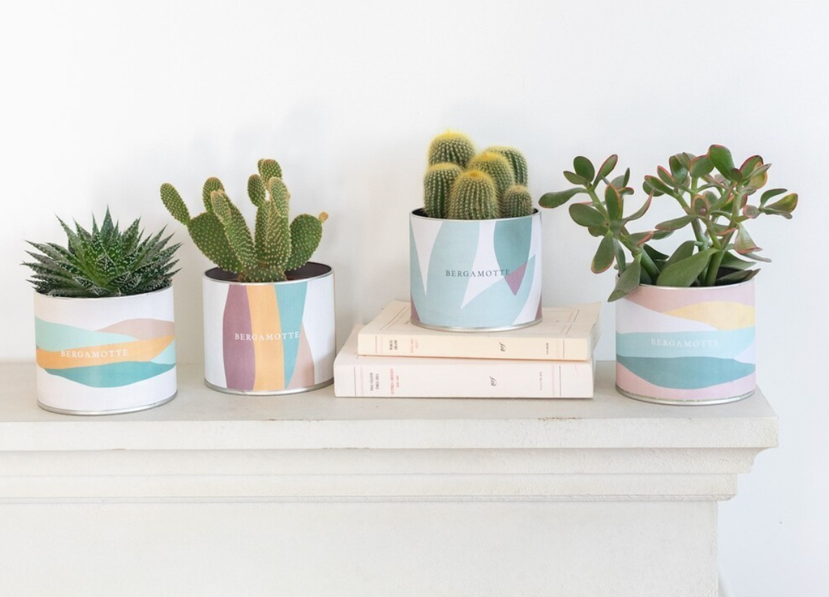 Ensemble de 4 motifs créé pour habiller les cache-pots de petits cactus de la collection Bergamotte.