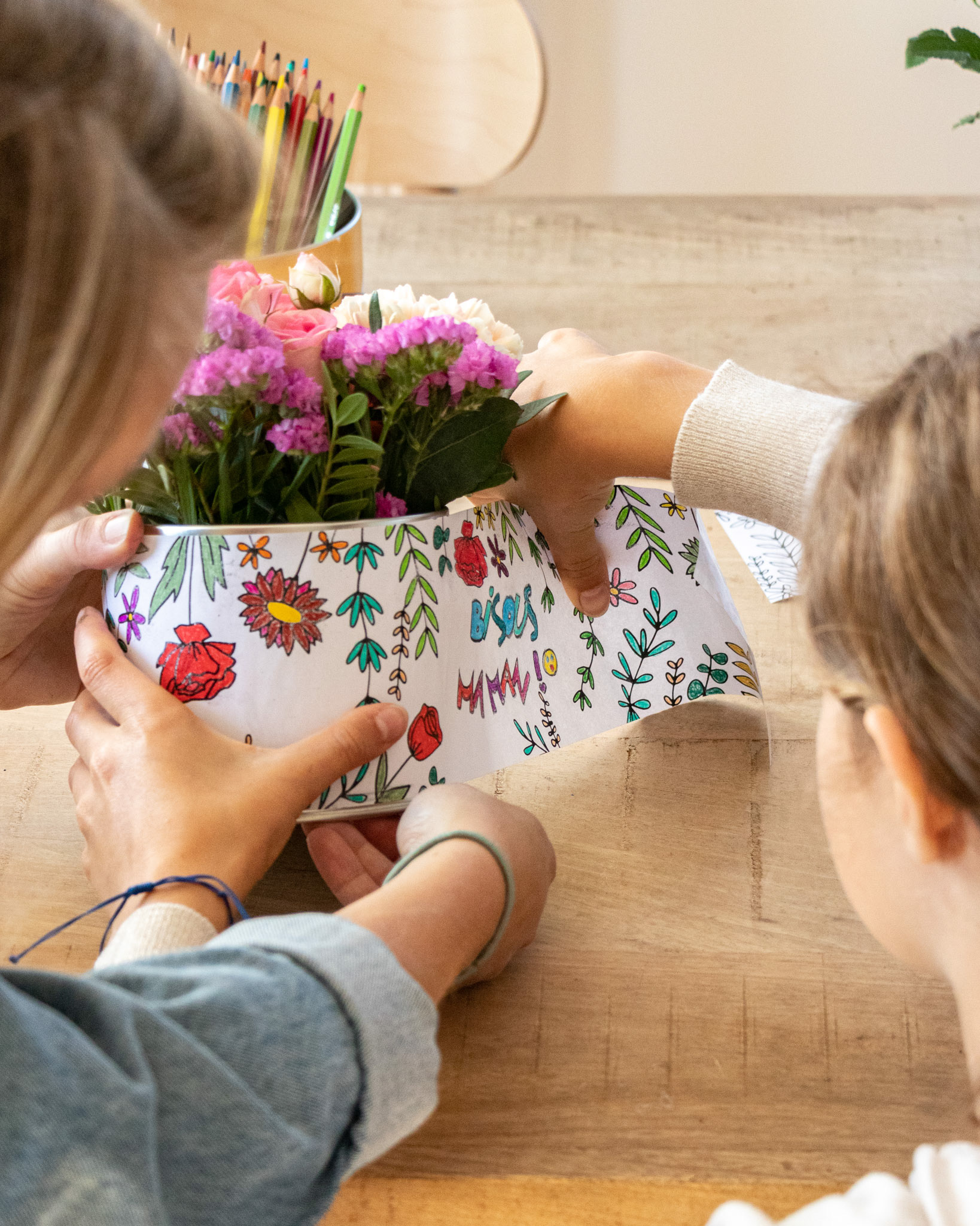 Illustration d'une étiquette autocollante à colorier et customiser pour la fête des mères